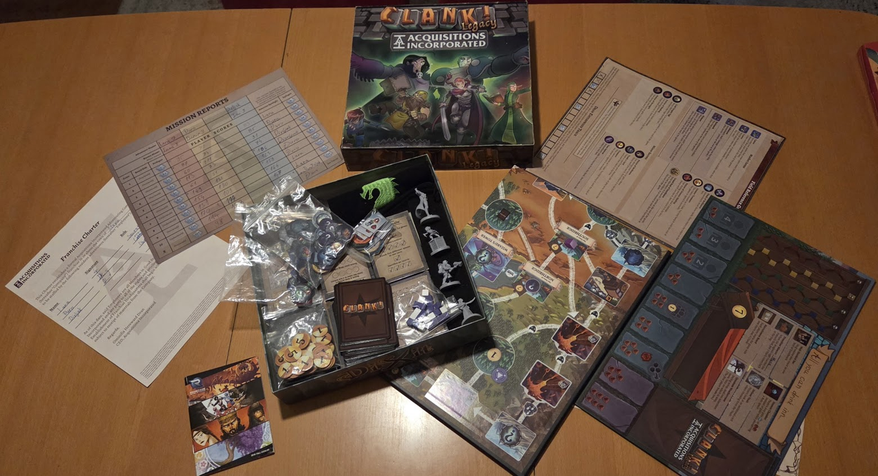 https://boardgamegeek.com/boardgame/266 ... corporated - odigrana Legacy kampanja, može se uredno igrati kao regularni Clank sa dvije velike mape, minijaturama i dodatnim modulima; igra je prekrojena da kompaktno stane u malu kutiju (osim ploče) - €40 €30 €20